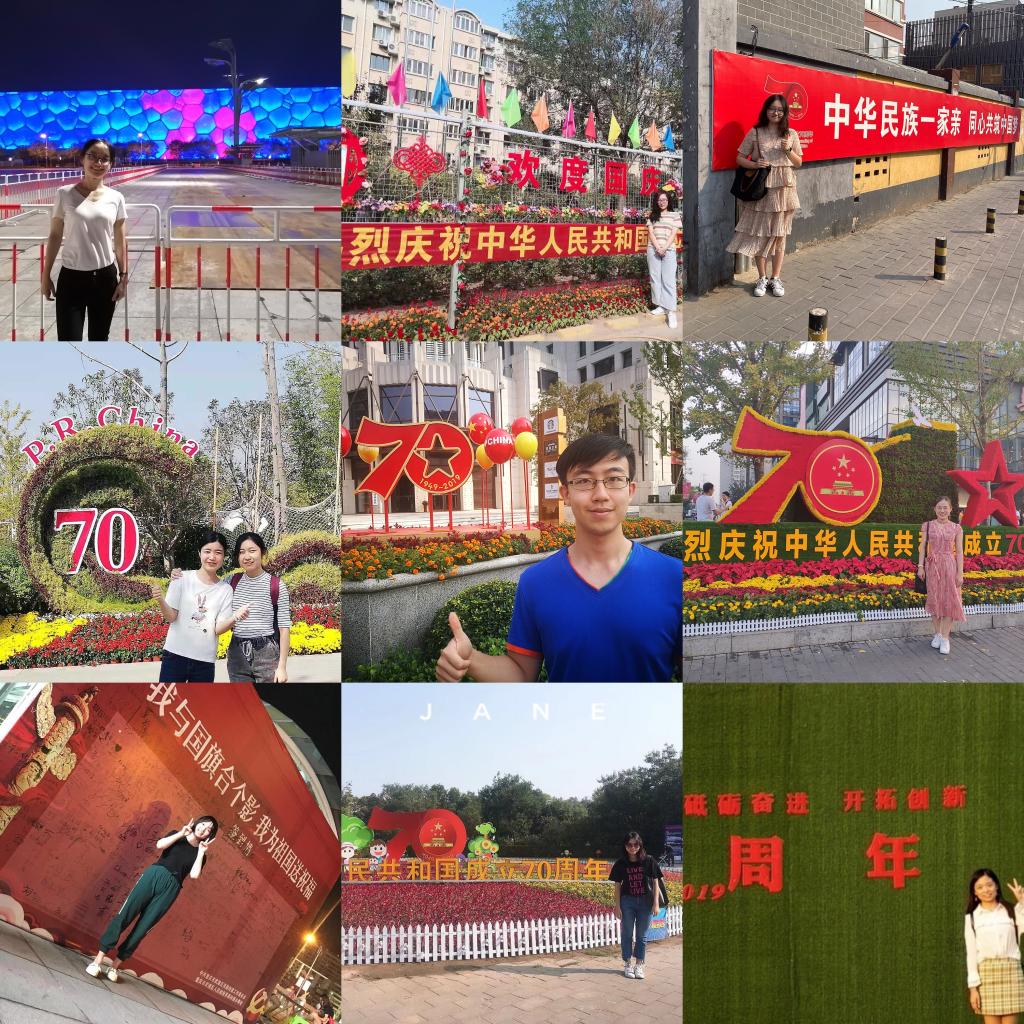 喜迎七十年,举国同欢庆。在“我与祖国共合影”之“欢庆生辰”部分,党支部成员与庆祝新中国生日的“70”字样合影留念。我们正值指点江山、挥斥方遒的青春年华,祖国母亲正走在稳步迈进全面小康、繁荣富强的阳光大道,用胶片留下每一个“我”与祖国美好的瞬间,用青春书写每一个“我”不忘初心、砥砺前行的奋斗华章!