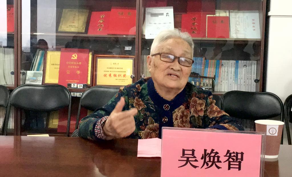 纪念章获得者吴焕智老师、于金富老师与师生党员进行了交流。两位老师虽年近九旬,但鹤发童颜、精神矍铄,在回忆起一生与家国相伴成长的岁月时,依旧难掩满腔的热情。离休干部吴焕智老师讲述了在解放战争中参加儿童团、巧送鸡毛信、在敌军炮火下行军八天八夜的动人故事,讲到激动之时,还给大家唱起了红色岁月中的“流行”歌曲。讲到新中国建立的不易,无数先辈用鲜血染红了五星红旗,他们的牺牲换了今天的幸福生活。吴老师勉励各位青年学生党员,在即将毕业面临人生选择的时候,一定要保持共产党员的初心,坚定共产主义信仰,为祖国和人民贡献力量。于金富老师讲述了在新中国建设中的历程和坎坷,从历史亲历者的角度,通过生动鲜活的例子,表达了共产党与人民群众的深厚感情;通过回忆在中财大学习、工作的往昔,为各位同学讲述了中财发展历程;最后于老师勉励各位青年学生党员,珍惜今天来之不易的学习机会,深入学习习近平新时代中国特色社会主义思想,提高政治觉悟和政治站位,在广大同学中做出表率。