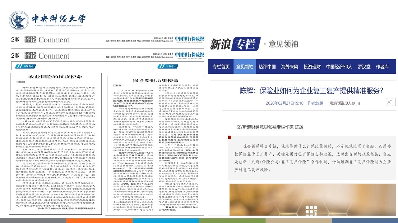 伟德官网教师陈辉致力于“新冠肺炎疫情与保险”系列研究,连续推出了四期内容,共20篇文章,从各个维度分析了保险面对疫情、抗击疫情的一些见解,每期都制作电子读物进行传播。