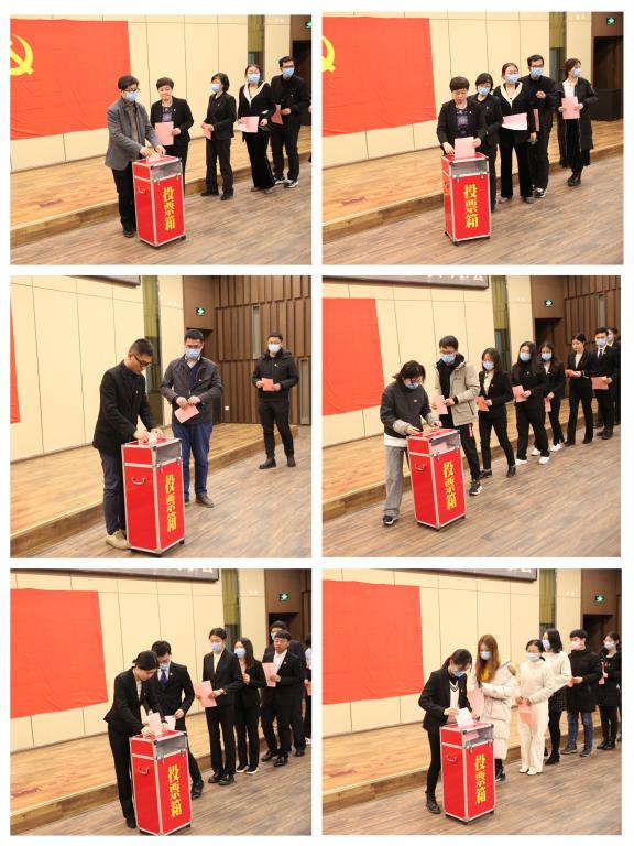 选举过程由总监票人冯帅主持,以无记名投票方式进行差额选举。选举开始前由监票人代表毛磊、董洪斌、张建伟检查投票箱并封箱,随后总监票人冯帅拆封选票,分发选票,进行选举。每一名党员认真履行职责,投下庄严的一票。