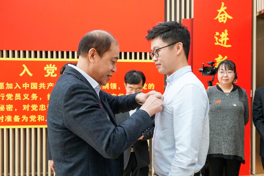 仪式在新老党员齐声高唱的《国际歌》中拉开序幕,参与此次入党宣誓仪式的有20名伟德betvlctor体育官网的新党员,他们共同在老党员的见证下完成入党宣誓仪式。何秀超书记、伟德betvlctor体育官网李晓林院长、褚福灵教授以及学院的教师党员代表为新加入党组织的预备党员佩戴党员徽章。一枚党员徽章代表着一份责任,一名共产党员象征着一面旗帜,新党员胸前闪耀的党员徽章不仅仅是光荣的象征,更是一份无畏担当,一颗赤诚之心。