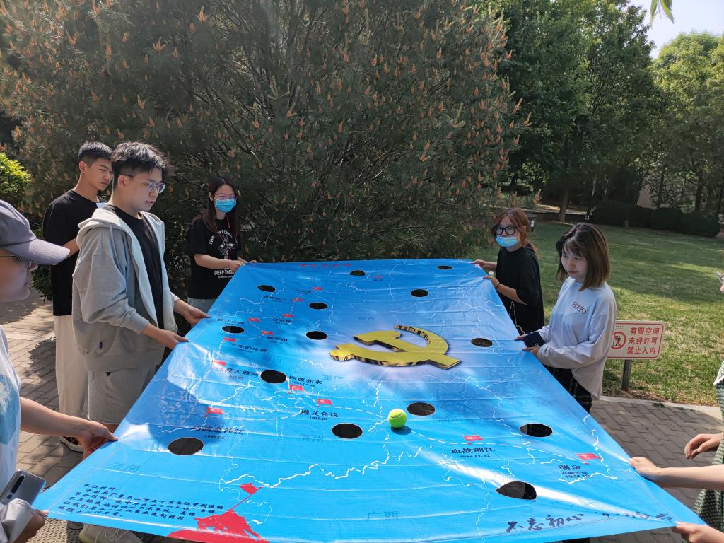 瑞金,中国革命的红色故都,党的初心重要发源地。在第三个站点——瑞金站,组织参赛同学在地图上模拟重走长征路,每组同学们分工合作,在中国长征路线图的画布上,用小球模拟长征路线,在不用手碰到小球的情况下,最先走完长征路的队伍获胜。通过此活动召唤着同学们一次次去“重走”长征之路,重温初心,不忘来时路。