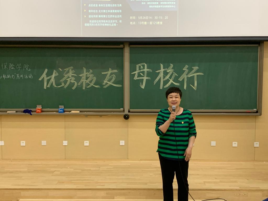 5月26日,在沙河校区13号楼125报告厅,伟德betvlctor体育官网党委和保险经济学学术创新团队研究生党支部成功举办了三场“优秀校友母校行”系列讲座。学院党委书记王颖,学院副院长王丽珍,保险经济学学术创新团队研究生党支部书记陈华,学院校友会负责人王庆焕出席讲座,来自学校、伟德betvlctor体育官网以及保险经济学学术创新团队研究生党支部的200余名师生聆听讲座,王颖书记到会致辞并全程参与。会前,院长李晓林、院党委书记王颖等老师会见了来校校友并亲切座谈。