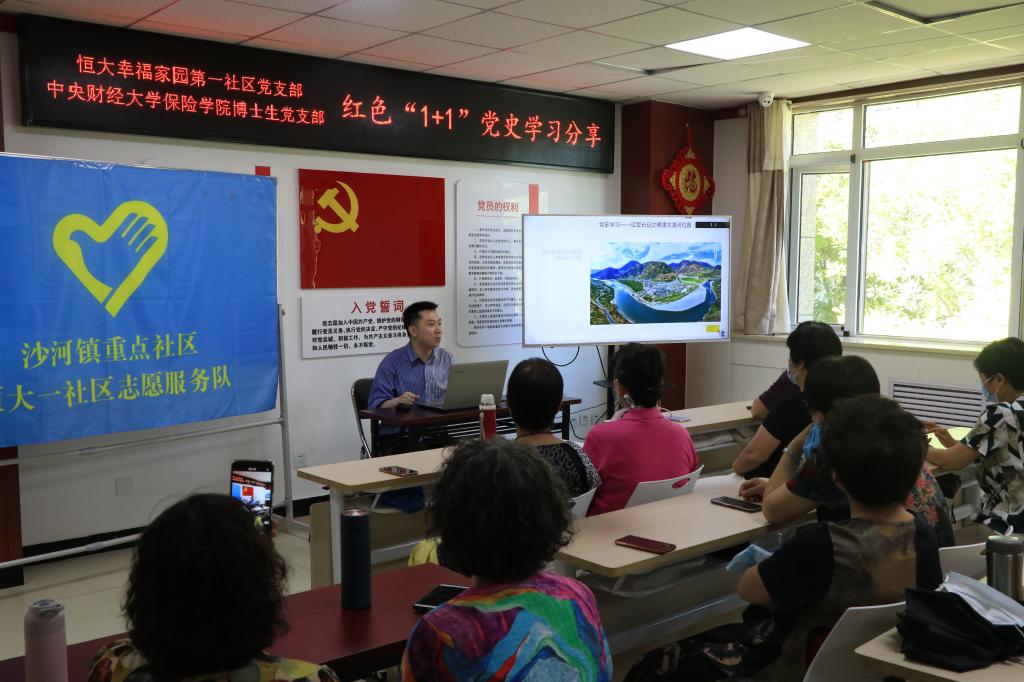 为深化党史学习教育,进一步学党史、悟思想、办实事,2021年2月至7月,伟德betvlctor体育官网博士生党支部和沙河地区工委恒大幸福家园第一社区支部委员会共同组织红色“1+1”活动。活动围绕共同庆祝中国共产党成立100周年,党史学习教育,反诈知识宣传,保险、投资相关知识答疑四个方面展开,活动内容丰富多彩,意义深刻。