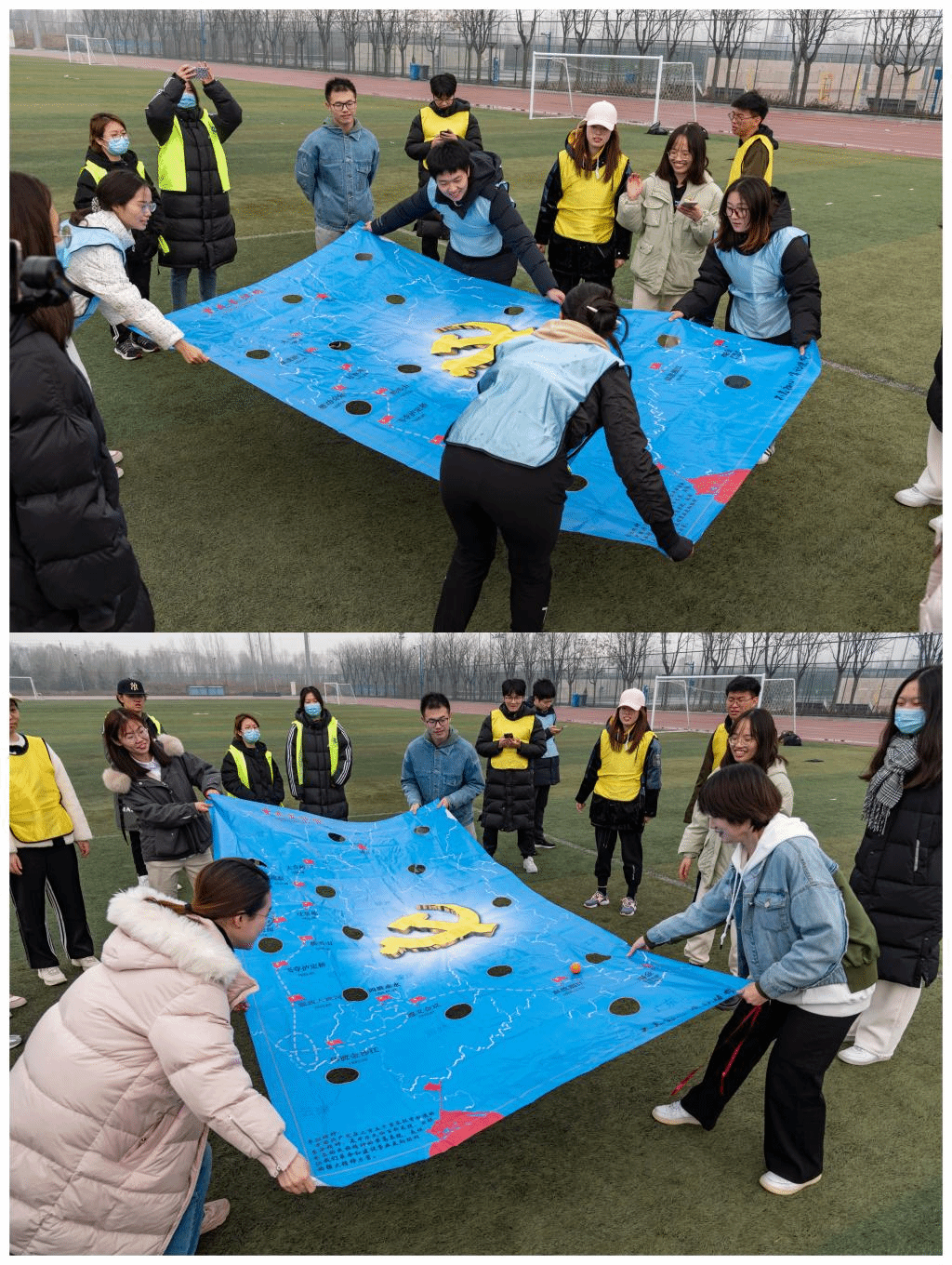 在“重走长征路”运动环节中,支部党员们齐心协力、分工合作,让小球在地图上从瑞金出发,沿着长征路线,最终成功到达延安。党员们积极投入其中,在模拟长征路的沉浸式体验中增进了对党史的学习和了解,重温初心,不忘来时路。