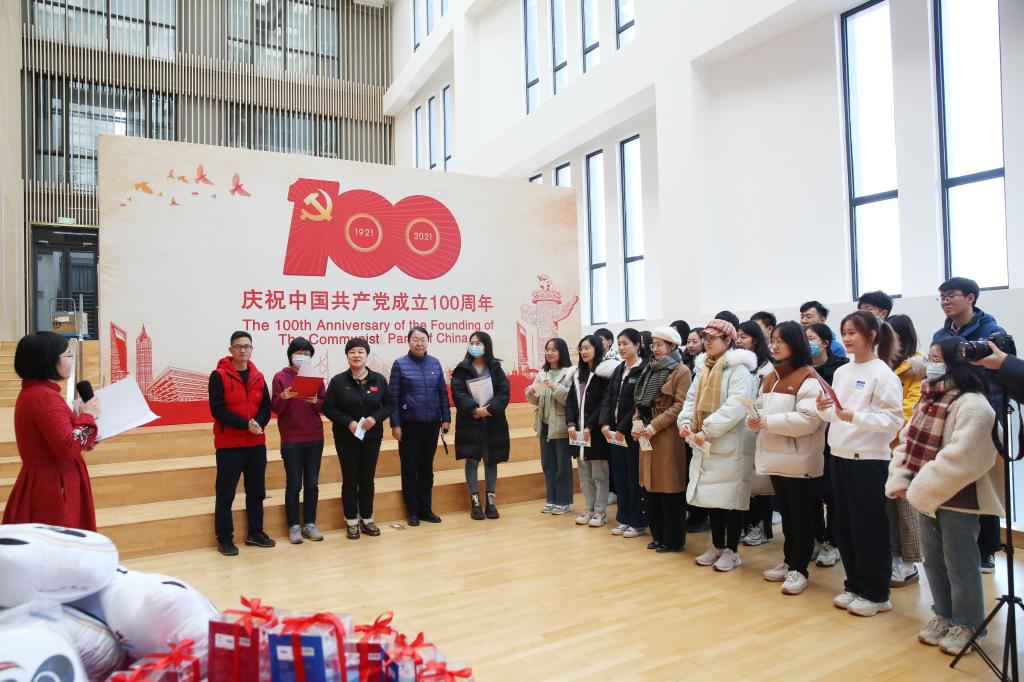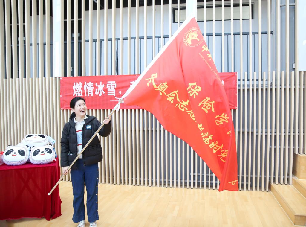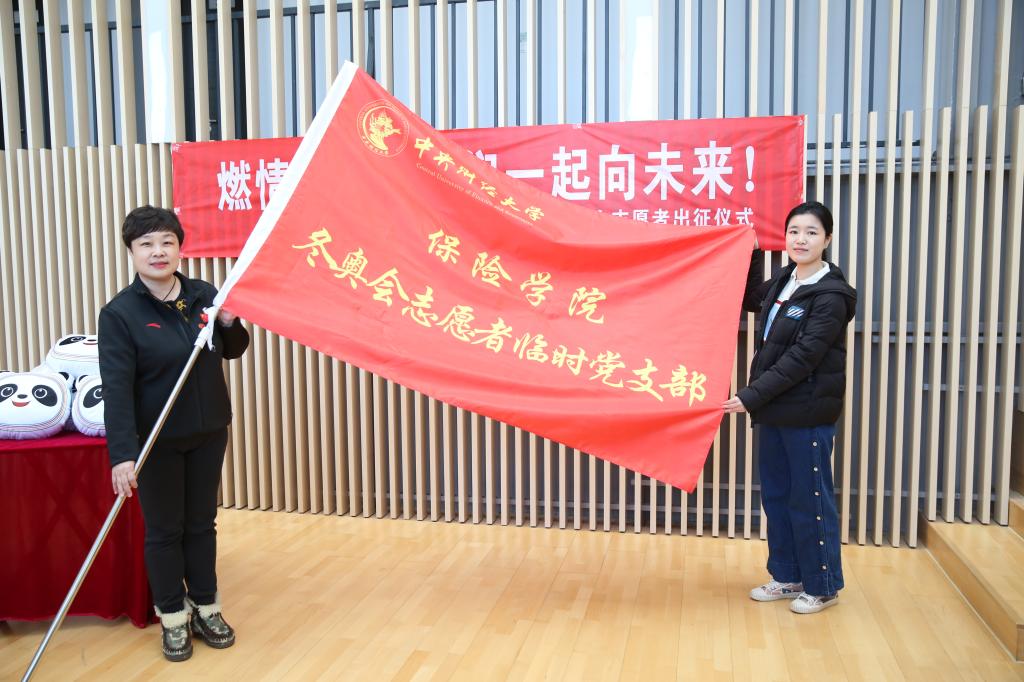 党委书记王颖为冬奥会志愿者临时党支部授旗