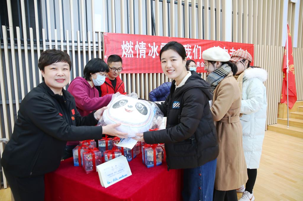 最后,各位老师为同学们送上冬奥纪念品并合影留念。