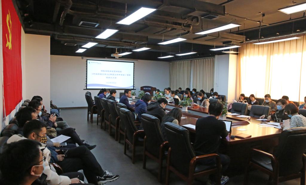 筑梦新征程,立足新起点;奋进新辉煌,一起向未来!2022年3月2日,伟德betvlctor体育官网在学院楼13号楼215会议室召开学习贯彻落实《伟德betvlctor体育官网2022年度工作布置会》精神教职工大会,会议由学院党委书记王颖主持,学院全体教职工参加会议。