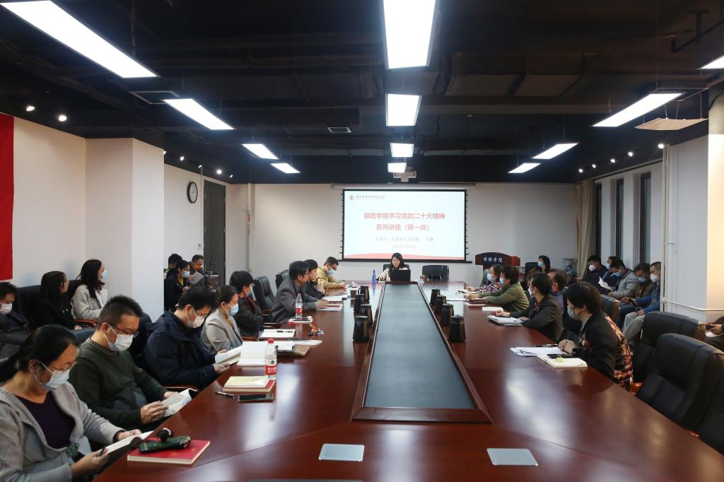 在交流环节,老师们就此次学习谈心得体会。褚福灵老师、许飞琼老师、郑苏晋老师、寇业富老师、周桦老师从理论创新、专业教育、课程思政、中国式现代化、中国人文社会科学话语权、财经类人才培养等方面,以专业课教师的视角分享了他们对于党的二十大报告中教育、科技和人才相关表述的感悟和解读。李晓林院长表示,作为教育工作者,每个人都需要去思考“如何培养优秀人才”这个问题,教师需要激发学生学习热情,鼓励学生创造性地思考问题,宽容地对待学生创新性的想法,同时引导学生要站稳人民立场,踏踏实实做研究。