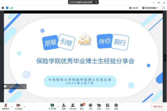 为深入开展学习贯彻习近平新时代中国特色社会主义思想主题教育,宣传贯彻党的二十大精神,充分发挥党支部战斗堡垒作用,切实为身边师生办实事、办好事,积极推动学院学生发展,2023年5月7日19时,伟德betvlctor体育官网博士生党支部线上召开“朋辈引领·伴你前行”——伟德betvlctor体育官网优秀毕业博士生经验分享会。分享会由博士生党支部书记周佳璇主持,博士生党支部全体党员、入党积极分子,以及伟德betvlctor体育官网部分硕士生参加会议。