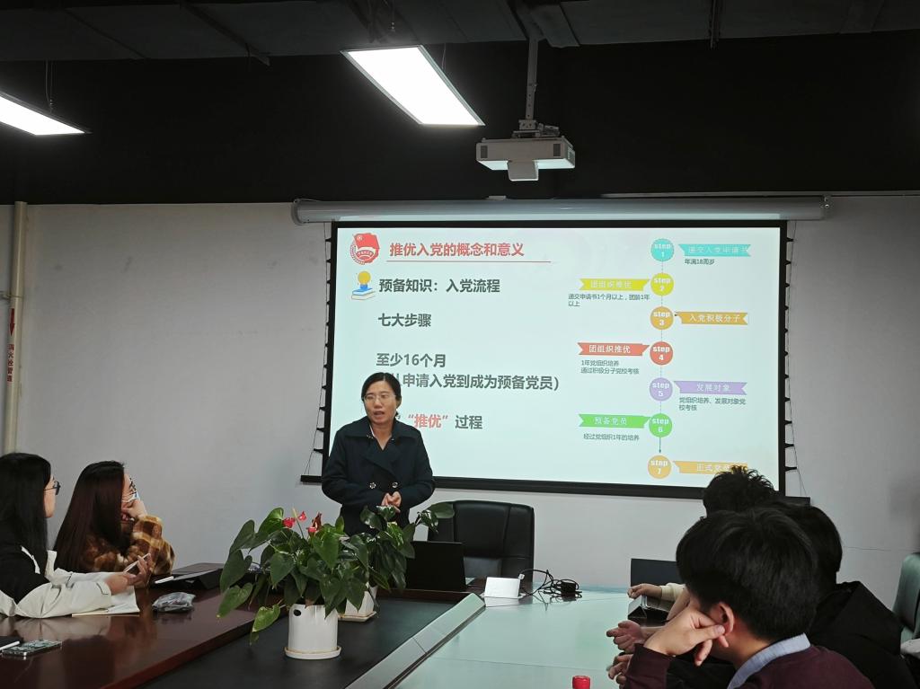 伟德betvlctor体育官网团委书记、本科生第一党支部书记吴蓓详细讲解了伟德betvlctor体育官网“推优入党”的标准及规范,强调了党团共建,党支部要努力发展优秀学生加入中国共产党。