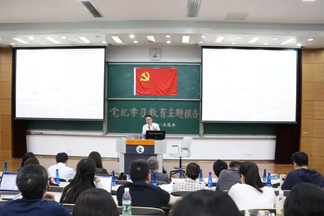 为深入扎实开展党纪学习教育,做到学纪、知纪、明纪、守纪,5月15日下午,伟德betvlctor体育官网党委与文化与传媒学院党委、外国语学院党委、国际经济与贸易学院党委、北京学院直属党支部,在主教学楼111教室联合举办党纪学习教育专家辅导报告会,特邀北京大学公共政策研究中心庄德水副主任带来“推进新时代纪律建设,把遵规守纪刻印在心”主题讲座。来自5个学院的师生党员、入党积极分子共300多人参加。