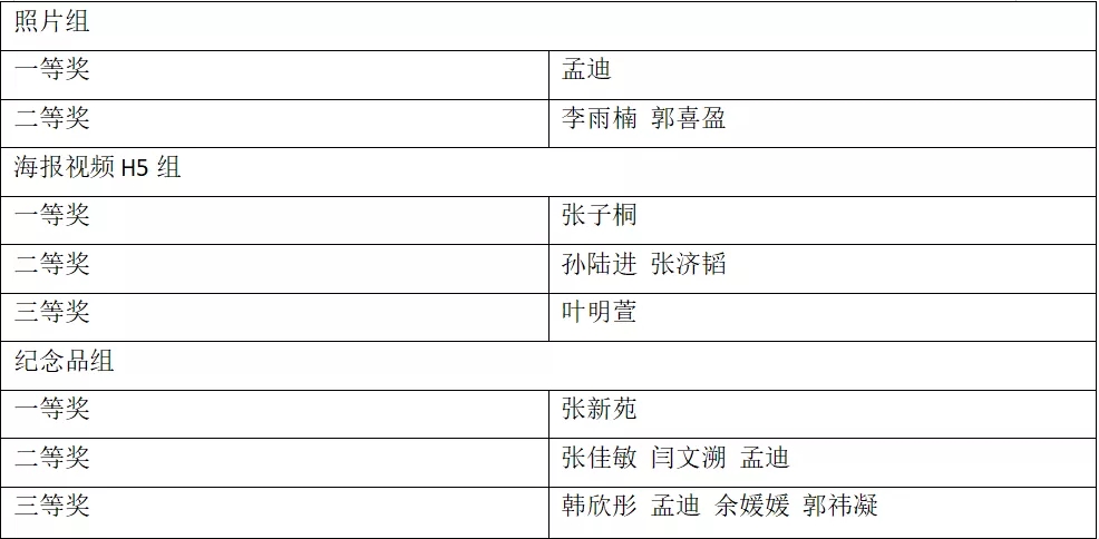 获奖名单