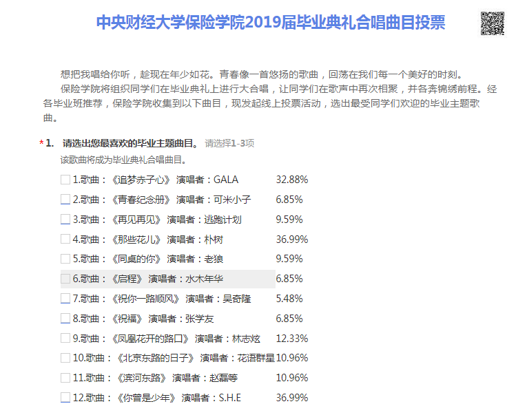 伟德betvlctor体育官网在毕业生中征集毕业典礼的合唱曲目,并组织同学们在毕业典礼上进行合唱,让同学们在歌声中再次相聚,并各奔锦绣前程。各个毕业班收集同学们推荐的曲目,共向学院推荐了十二首毕业主题歌曲。伟德betvlctor体育官网收集各班推荐的曲目,发起线上投票活动,在同学中选出最受欢迎的歌曲,并组织毕业生在毕业典礼上进行合唱。同时,伟德betvlctor体育官网将接受同学们的自主报名、互相推荐,选拔出毕业典礼合唱节目的领唱。