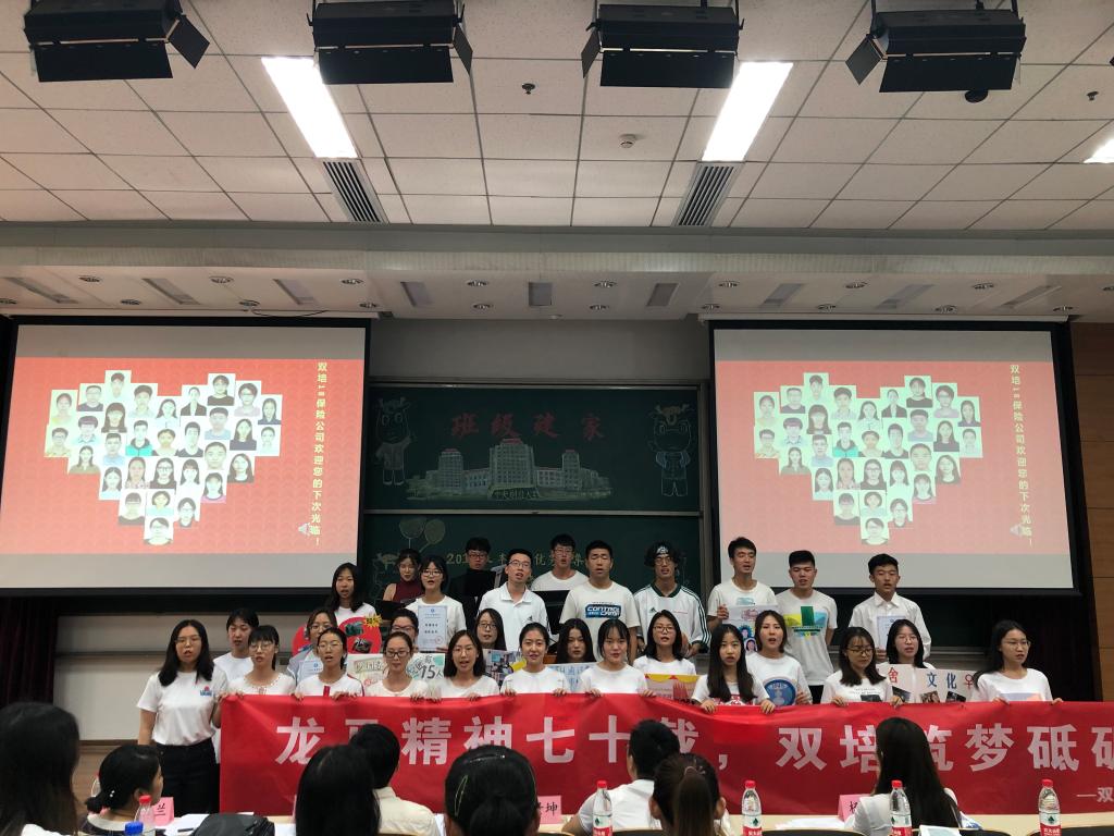 双培保险18班的同学,结合自己保险人的身份,以保险公司年会的形式,将思想建设,班风建设,学风建设,队伍建设化为四张保单,向各位评委老师展示双培18保险公司在这一年里取得的成绩,希望各位老师感受到双培保险人的创意和热情。正值中财大七十周年之际,双培保险人以“龙马精神七十载,双培筑梦砥砺行”向中财大致敬,向我们的家献礼。