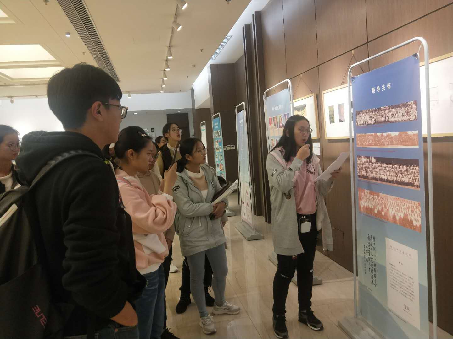 一近校史馆,讲解员就开始热情地讲解校史沿革——与国同体,曲折前行和全面发展。通过讲解,同学们了解到如今学校取得的成绩的来之不易,是靠一代又一代中财人传承的力量奋斗而来的。