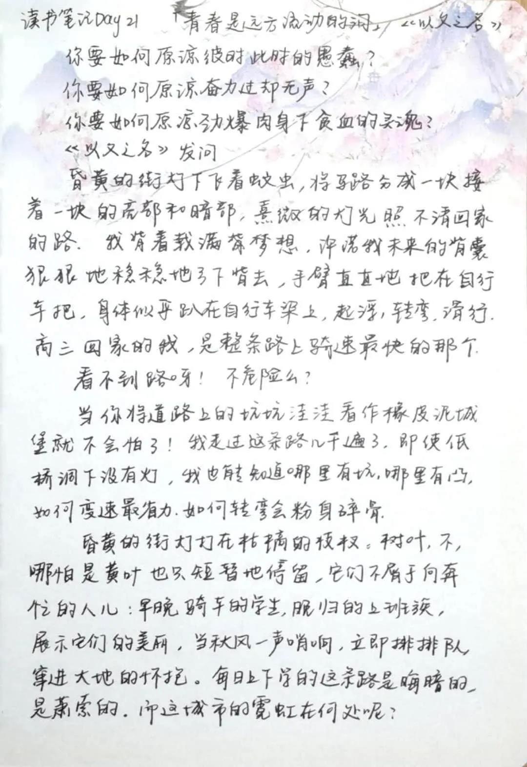 一本好书,一支笔杆,便可撑起一方天地。同学们阅读的书籍广泛而有深度,同时也留下了不少精彩的读书笔记。或在《平凡的世界》中 感悟时代的芳华,或于经济学论文中体验严谨的研究方法,或在与王小 波的灵魂对话中拓宽生命的维度。精彩的读书笔记不仅是与作者的深入 交流,更是对自己灵魂深处的探寻。就让我们一起来欣赏一下吧!