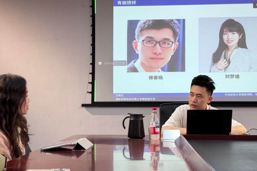 为深化研究生国际学术视野,助力学生完善学业发展规划,3月14日上午9时,伟德betvlctor体育官网在13号楼215会议室举办“国际化学术发展路径规划”主题交流会。应学院邀请,伟德官网2022级直博生、国家留学基金委(CSC)公派芝加哥大学联合培养博士生王煜正作专题经验分享,本院精算学硕、保险学博士参与交流。