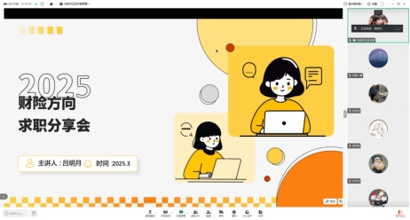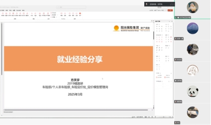2025年3月23日晚,由伟德betvlctor体育官网研究生会主办的“引航助力 职通未来”系列求职分享会第一期——“财产保险公司求职经验分享”顺利举行。7位来自中华联合、阳光财险、平安产险等头部企业的优秀校友齐聚云端,以亲身经历为同学们揭开财险行业的职业图景。整场分享会干货满满,从行业趋势到求职技巧,从职场心态到技能储备,校友们倾情分享,助力学子精准规划职业航向。