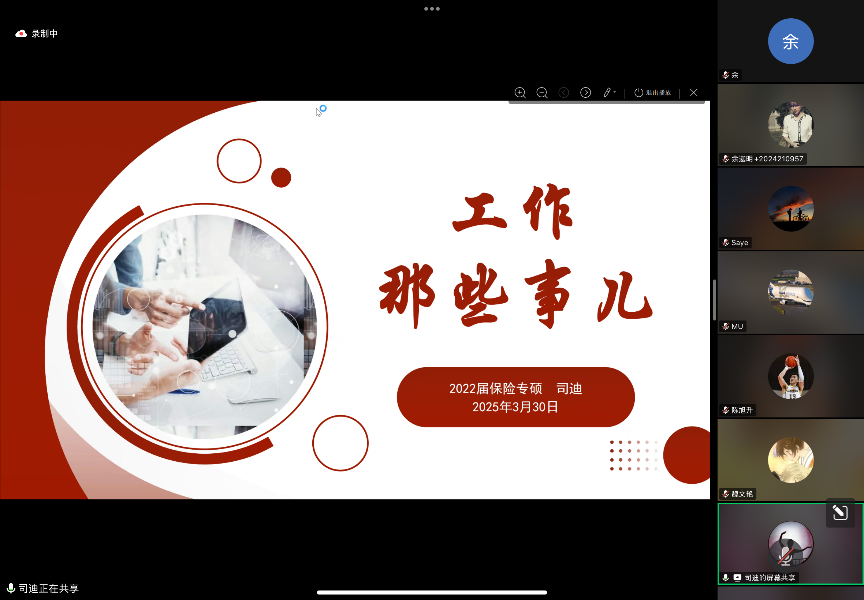 2025年3月30日晚,由伟德betvlctor体育官网研究生会主办的“引航助力 职通未来”系列求职分享会第二期——“寿险公司求职经验分享”顺利举行。6位来自新华人寿、中国人寿、太平人寿等头部寿险企业的优秀校友齐聚云端,以亲身经历为同学们揭开寿险行业的职业图景。整场分享会干货满满,从公司业务到求职技巧,从职场心态到技能储备,校友们倾情分享,助力学子精准规划职业航向。
