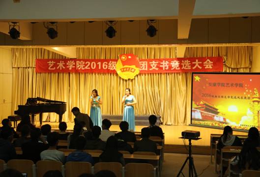 竞选期间,主持人介绍了竞选规则,来自音乐学、美术学、视觉传达设计的25位同学逐个登上舞台展示个人风采,选手结合PPT进行三分钟演讲,演讲结束后随即进行评委老师提问环节,两部分的得分之和为最后的分数,选手们的演讲内容都围绕团支部建设与班级建设的种种设想展开,并介绍了自己的个性特点、获得的成绩、荣誉,表达了为集体服务的决心。竞选期间音乐学专业的学长和2016级音乐学新生还展示了个人的专业才艺,使整个会场洋溢着欢快、和谐的氛围。