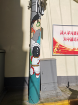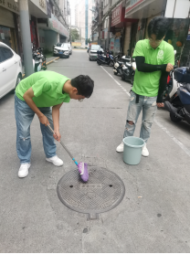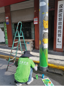 7月10日下午,在团队的共同协作下,让原本黝黑的井盖,变成一道亮丽的风景,一根根电线杆成了美化社区的“风景柱”,群众出行的“安全柱”。看似简单的绘画,成为扮靓社区街头的“微景观”,不仅是对实践队员专业技能的考验,也是对实践队员们体能和意志的考验,同时也是高校大学生响应文明城市创建的生动实践。