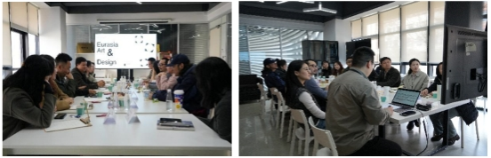 3月16日,师生团队乘火车抵达西安,首站入驻欧亚学院。次日,实践教学以一场“双线并行”的活动拉开序幕:欧亚学院牛玉玺老师为学生做“About 设计”专题讲座,随后带领学生参观了欧亚设计博物馆,通过展陈的现代设计作品与数字艺术装置,感受设计语言的时代变迁;教师组在学院陈琳老师的带领下参观了艾德设计学院的工作坊、实训室、展览厅、产学研中心等,随后由艾德设计学院院长助理郑乐老师主持交流活动,活动围绕“视觉传达专业改革”“AI技术赋能设计教育”等议题展开深入研讨。郑乐老师统阐述了学院“雇主导向”与“在地国际化”两大核心理念,并指出设计教育需直面行业需求,以雇主需求倒推课程设计,同时立足本土文化资源,培养兼具国际视野与在地实践能力的复合型人才。同时,欧亚学院也热情与PT平台电子游戏官网教师分享了其特色教学模式:如工作室设置双导师制度,即每个工作室配备“行业导师+专业导师”,企业专家全程参与课程设计;学院设置了专业主理人制,即由青年教师牵头成立主题工作室,通过自下而上的方式推动专业创新;另一方面,艾德设计学院在实际教育活动中立足项目化教学,让所有课程以真实项目为载体,教师学生作品被纳入地方文化推广计划。