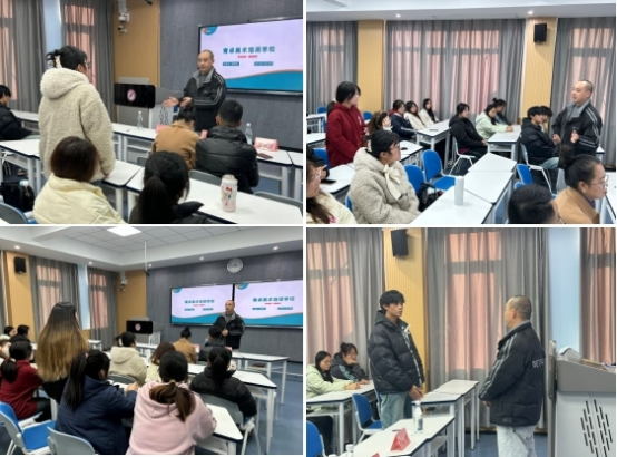11月28日下午,PT平台电子游戏在江北校区1219教室举办了美术学专业就业招聘宣讲会。参加本次招聘会的有安康青卓美术创始人马勇、青卓美术总校校长原翠翠、青卓美术高新校区校长陈澍洲、毕业班辅导员邱青晓以及2025届部分美术毕业生。本次招聘会由邱青晓主持。