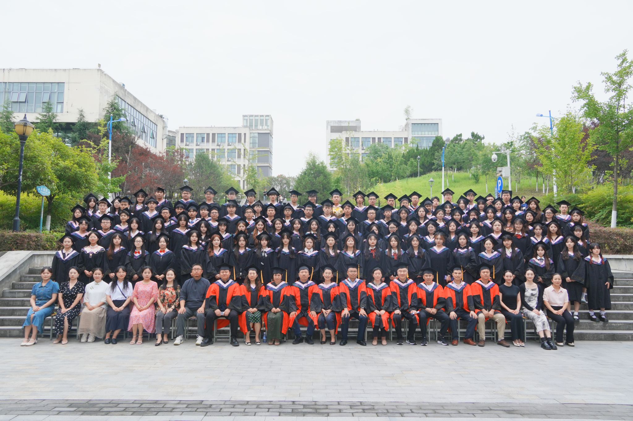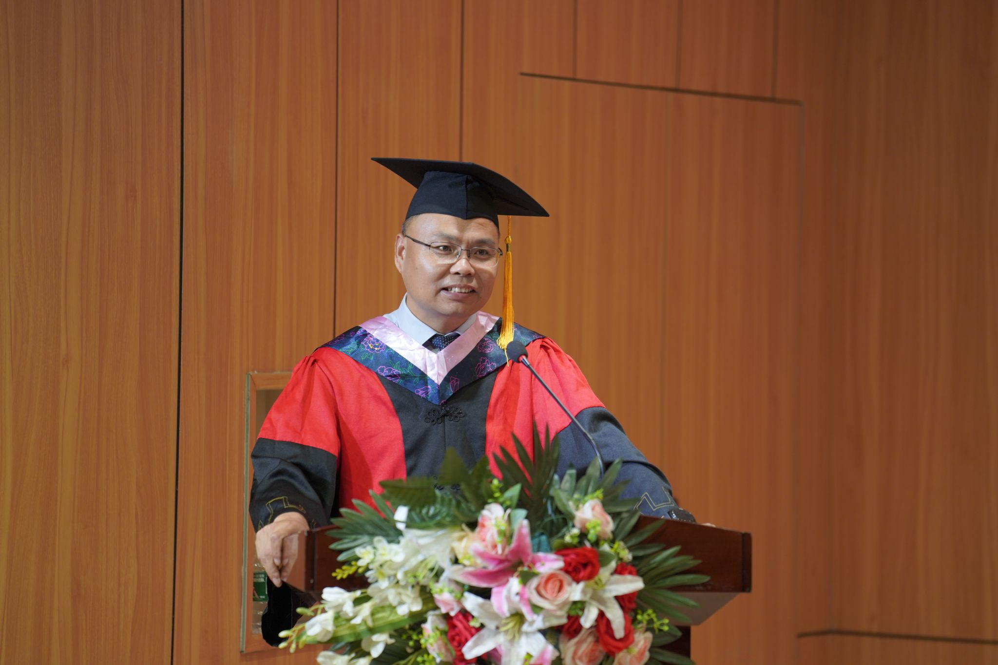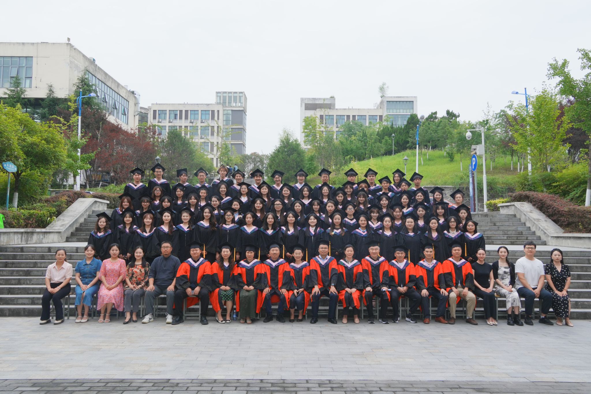 伴随着动听歌声,院长成党伟和导师们为毕业生们一一正冠拨穗,颁发学位证书,并合影留念。