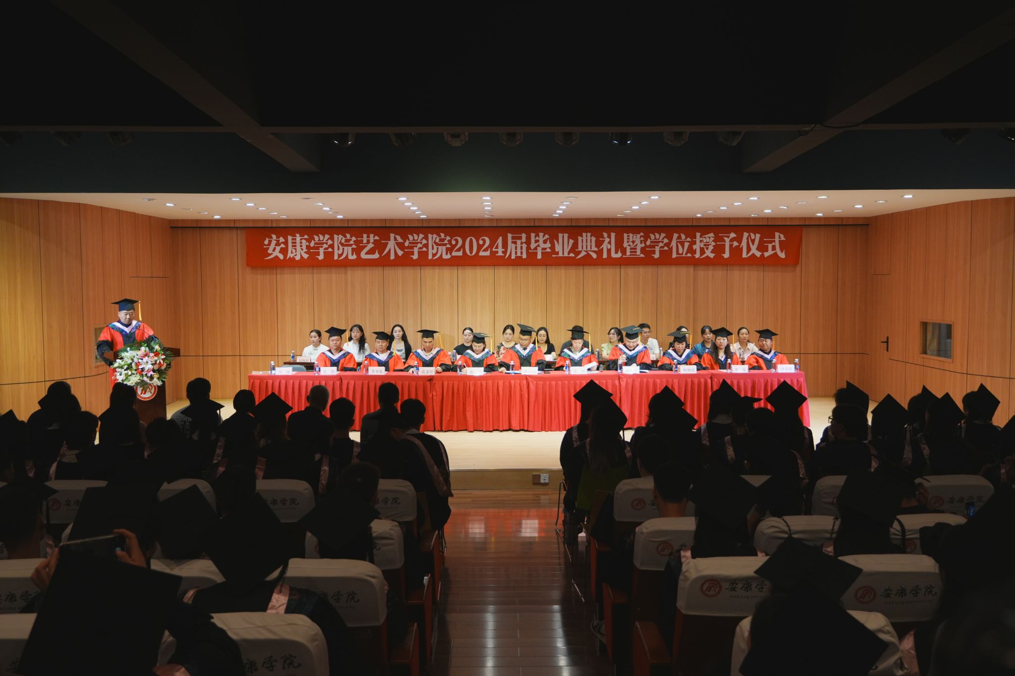 7月3日上午,PT平台电子游戏2024届毕业典礼暨学位授予仪式在江北校区1401演艺厅隆重举行。PT平台电子游戏领导班子及教师代表出席毕业典礼,典礼由PT平台电子游戏党总支副书记肖剑主持。
