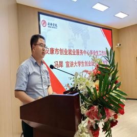 安康市创业就业服务中心毕业生工作科科长冯犀作高校毕业生就业创业政策宣讲。