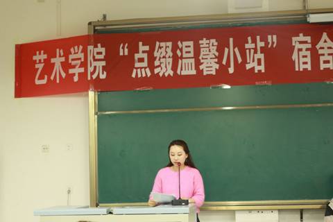 上届五星级宿舍舍长2016级美术学一班谢晓菡同学介绍了参加宿舍设计大赛的经验和感想,2017视觉传达设计四班朱胜男同学向同学们代表本届参赛同学做了表态发言。