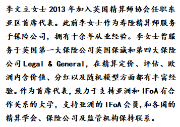报告人:李文立,FIA,英国精算师协会东亚区首席代表