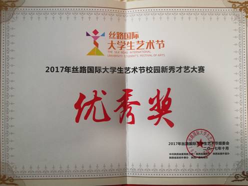 近日,在由中共陕西省委高教工委、中共陕西省委对外宣传办公室、陕西省教育厅、陕西省人民政府外事办公室、陕西广播电视台共同主办的2017年丝路国际大学生艺术节活动中,PT平台电子游戏官网范义付副教授指导、学生郭宝宝和贾晓惠参与的朗诵节目《青春宣言》获优秀奖。