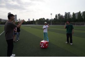 同学们通过掷骰子选择对应的“你演我猜”游戏任务。两人一组,一名同学用肢体语言演绎内容,另一名同学猜出词语,培养同学们的团结合作意识。活动过程中,表演者的滑稽动作引起周围观众的哈哈大笑,到处充满了欢声笑语。