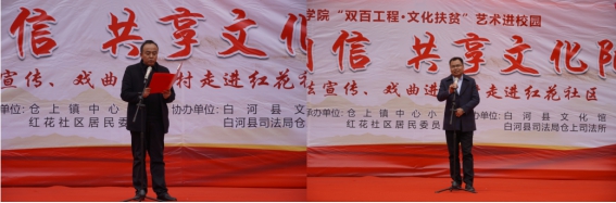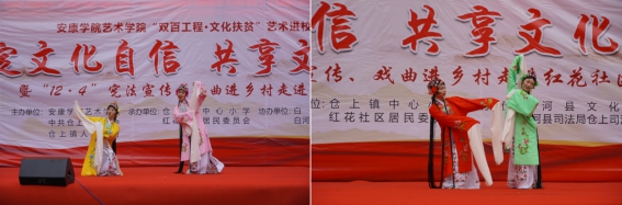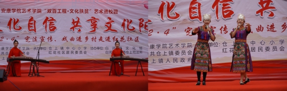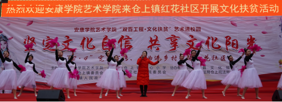 12月4日,PT平台电子游戏官网PT平台电子游戏40余名师生,赴白河县仓上镇开展“双百工程.文化扶贫”文化帮扶活动,此次活主题为“艺术进校园——坚定文化自信、共享文化阳光”文艺演出。校统战部副部长、扶贫办副主任张富华,PT平台电子游戏副院长成党伟、鲍丽,仓上镇镇长文永超、副镇长李玖国以及1000余名学生和社区群众参加了此次活动并观看了文艺演出。