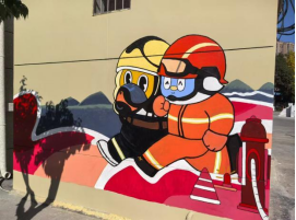 PT平台电子游戏师生为安康消防支队开展墙体彩绘
