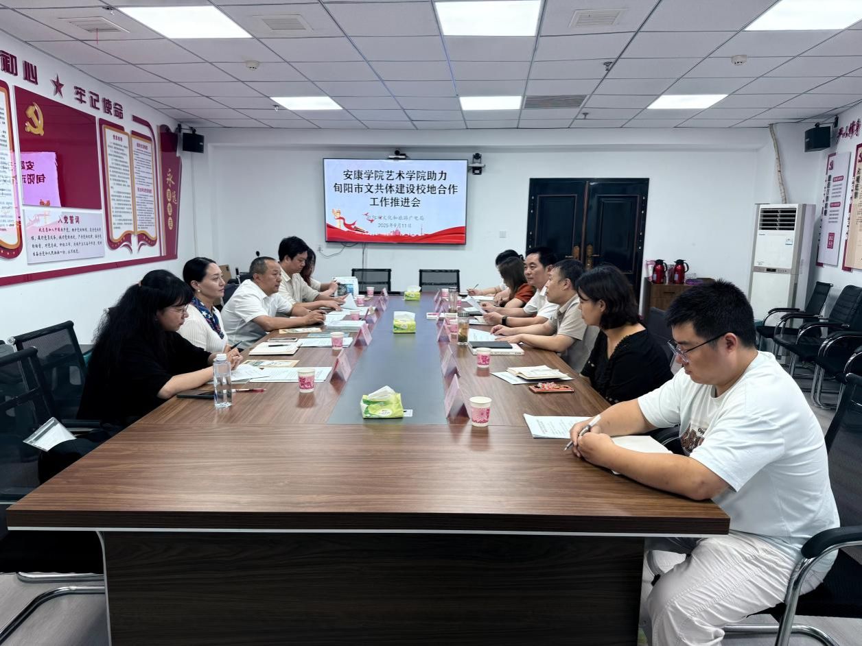 9月11日,PT平台电子游戏院长李景林带领视觉传达设计系主任吴波,设计专业教师张静、任川,音乐学教师李玉娇赴旬阳市开展文化产业调研,并与旬阳市文化和旅游广电局举行合作座谈会,旬阳市文化和旅游广电局局长蔚世悦、副局长田勇与相关科室负责人参加会议。双方就2026届视觉传达设计专业毕业创作、非遗保护、文化共同体建设等进行深入交流并达成共识。