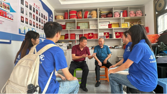 8月29日,实践团队来到紫阳县何家大院拜访了紫阳民歌国家级传承人何耀信,省级传承人何显鹏。何显鹏老师首先带领团队成员参观了紫阳民歌剧团,讲述了紫阳民歌的历史、内容和体裁,让成员们更加深入的了解了紫阳民歌作为陕南民歌重要的组成部分具有着极大的社会价值和精神文化价值。