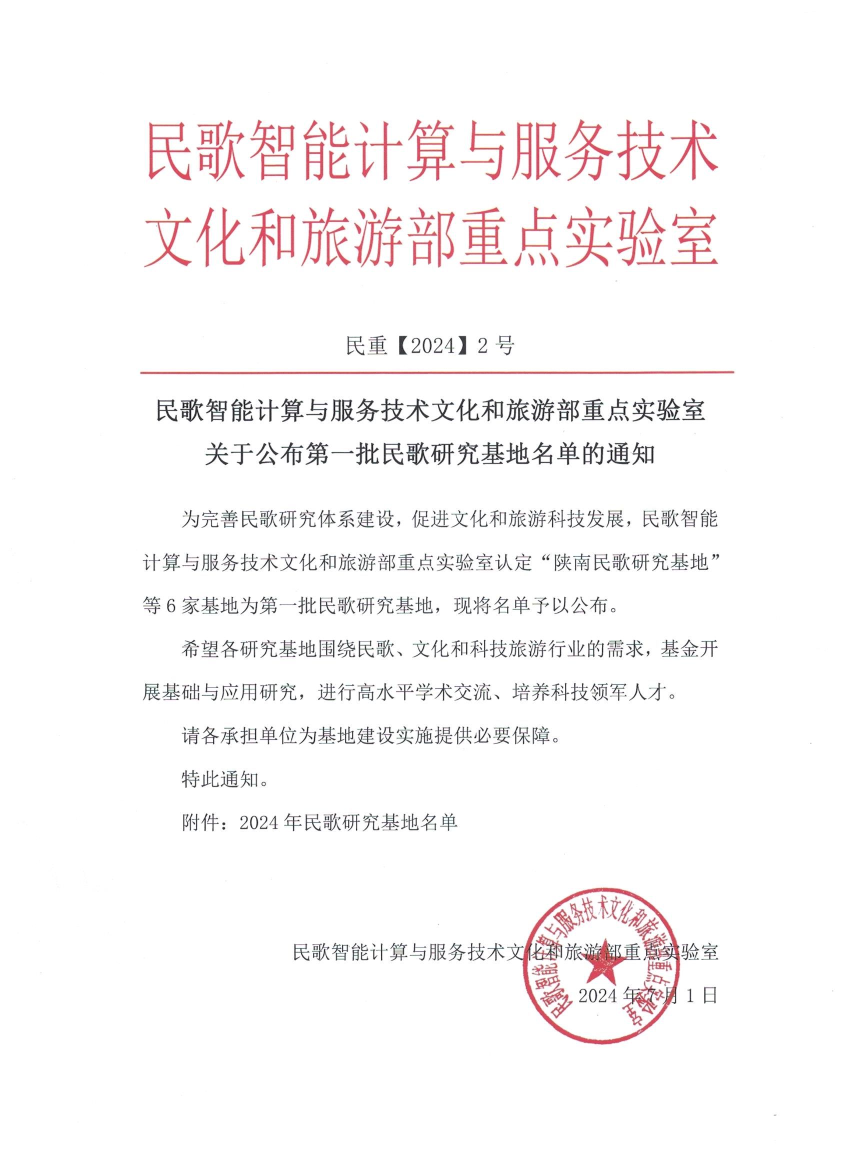 PT平台电子游戏官网获批文旅部重点实验室“陕南民歌研究基地”