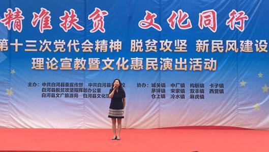6月13日,PT平台电子游戏党员教师田川、李磊同志,按照PT平台电子游戏党总支“精准扶贫”工作安排,赴白河县卡子镇参加了由白河县文化馆主办的“精准扶贫,文化同行”走进白河县卡子镇中心小学文化惠民演出活动。田川和李磊分别演唱了歌曲《我爱你中国》和《美丽家园》,引起观众的阵阵掌声。演出结束后,两位老师又与白河县文化馆卢传珍馆长和相关文化干事对结对帮扶工作进行了交流和探讨。这意味着PT平台电子游戏官网精准扶贫、文化下乡工作正式迈出了坚实的第一步,将会在PT平台电子游戏“精准扶贫,文化同行”的惠民演出、合唱排练、舞台设计方面进行更多的交流。