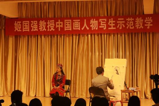 当日下午3时,姬国强教授在PT平台电子游戏演艺厅为美术学专业师生作了题为“中国画人物创作”的学术报告以及现场示范教学,对PT平台电子游戏官网师生在教学、科研、艺术创作等等方面有着重大的影响。