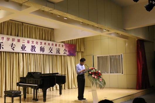 PT平台电子游戏第二届文化月开幕式暨六校音乐专业教师交流音乐会由PT平台电子游戏官网党总支书记王辉主持。PT平台电子游戏副院长雷升录对来参加交流会的嘉宾表示热烈的欢迎,并介绍了本次文化艺术月以“一次校际艺术交流”、“两台专业晚会”、“三场专家讲座”、“四个大型展览”、“五项技能大赛”、“六项特色活动”为主线,掀起PT平台电子游戏官网学生“追赶超越”学技能的热潮,努力促进学风建设。