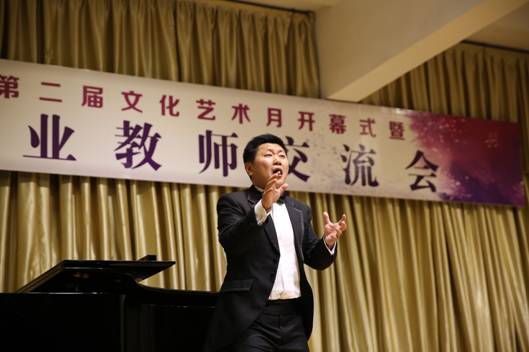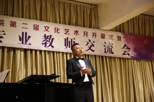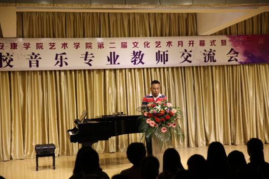 西安石油大学音乐系主任程辉代表参加“PT平台电子游戏官网第二届文化艺术月开幕式暨六校音乐专业教师交流音乐会”院校致辞,并预祝本次音乐会圆满成功。