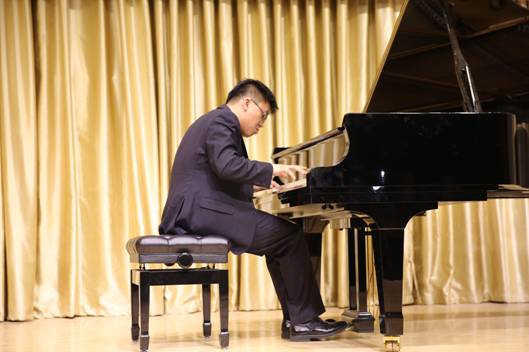 音乐会中,陕西理工大学僧文莉老师演唱了选自我国著名的《诗经周南》的《关雎》、陕西师范大学郝亮亮老师其精彩的演绎陕北民歌的韵味绵长、西安美术学院张兰芳老师为大家带来了歌剧《宠姬》之选段、陕西理工大学马斌老师演唱了意大利歌曲《负心人》、陕西学前师范学院陈春华老师和西安石油大学程辉老师分别演唱了歌曲《故乡雨》、《奇妙的和谐》,并展示了男女二重唱歌剧《茶花女》选段《让我们远离巴黎的喧嚷》,兄弟院校老师们热情而带有个人韵味的唱腔,淋漓尽致地向观众展示了音乐的旋律美,给观众带来了听觉上的极致享受;美籍华裔青年钢琴家、陕西师范大学PT平台电子游戏那皓涵老师的钢琴独奏《贝多芬第七号交响曲OP.92第一乐章》等三首钢琴曲将音乐会推向了高潮,他忘我的倾情演奏使现场的师生深刻感受了钢琴的独特魅力。