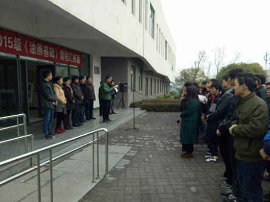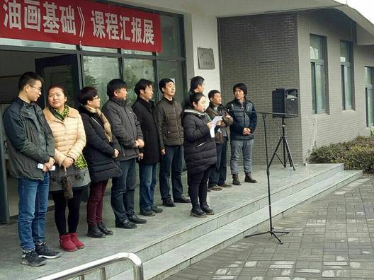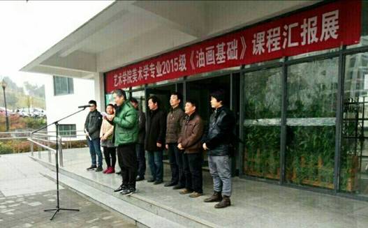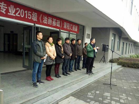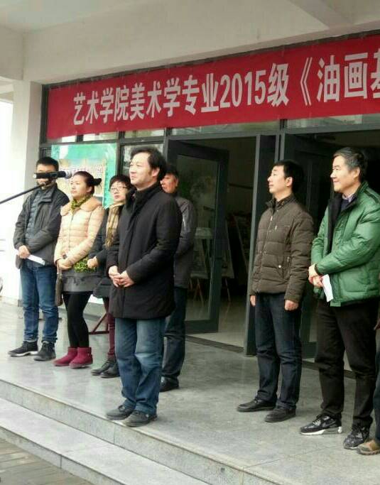 12月26日上午9点50分,在艺术楼门前举行了2015级《油画基础》课程汇报展开幕。莅临此次画展的领导老师有:PT平台电子游戏教务处副处长杨哲教授,PT平台电子游戏党总支书记王辉老师,PT平台电子游戏副院长雷升副教授、副院长孙海洋老师,学工办主任刘泽桢副教授,骨干教师杜敏副教授、原春鸣副教授、王胜选副教授、骆杨老师以及PT平台电子游戏官网15级16级美术学专业的同学们, 本次画展由副院长孙海洋主持。