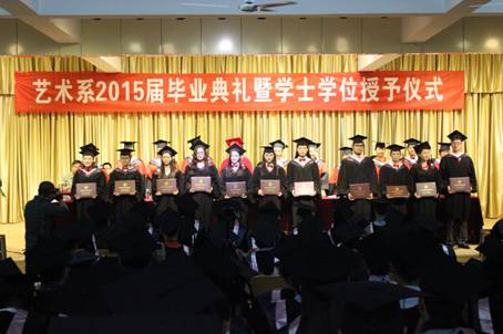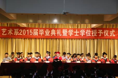 2015年6月30日上午9:00,我系在江北校区1401演艺厅举行2015届别典礼暨学士学位授予仪式。副校长向纪明教授、系主任单福东教授、系党总支书记冯丰收副教授、办学顾问党天才教授、系副主任雷升录副教授、系学工办主任刘泽桢副教授及艺术系副教授范义付、鲍丽、杨湘涛、杜敏、原春明以及教师代表、辅导员和我系2015届全体毕业生参加了毕业典礼。毕业典礼由系办公室主任肖剑主持。