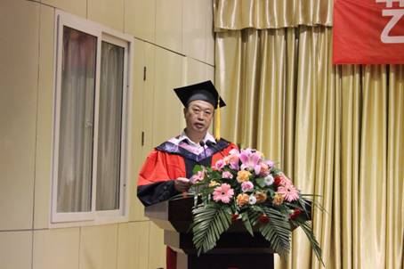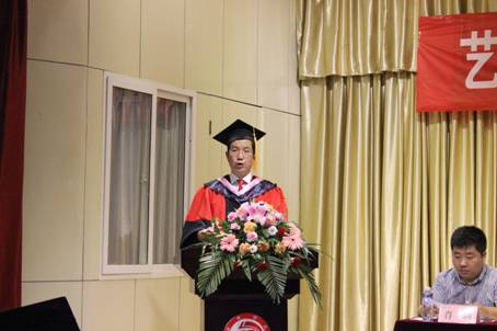 单福东主任首先致辞,他说,今天我们在这里举行一年一度的毕业典礼和学位授予仪式,对你们来说非同寻常。这是你们人生中的一个转折标志,是你们人生征途中的一个里程碑!同学们你们将要离开狭小的校园,步入天阔地广、充满活力的社会!希望同学们要志存高远,做一个有理想、有追求、有创新的艺术人才;同学们要自信、自尊、自爱、自立、自强;要敢于担当、敢于负责,善于沟通,长于协作!希望同学们迈开大步踏上人生新的征程。