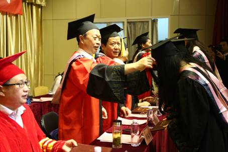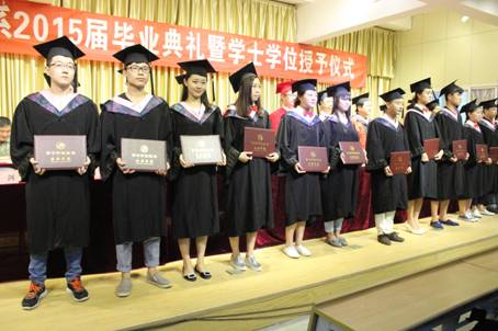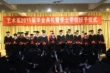 冯丰收书记宣读了学校关于对2015届优秀毕业生表彰决定和我系毕业展演获奖名单;雷升录副主任宣读了PT平台电子游戏关于对2015届本科毕业生授予学位的决定。接着各位导师为获奖同学们颁发了荣誉证书;为获得学位证书的毕业生颁发学位证书并为各位文艺学学士扶正流苏。今年我系共有267名毕业生,其中本科毕业生237人(235人授予文艺学学士学位),专科30人。