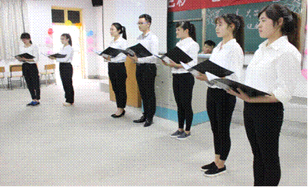 2014级美术学四班的配乐诗朗诵《青春没有驿站》拉开了本届展示活动现场的帷幕。“青春是一列单程车,不能返回,也没有驿站”,所以,我们要“告别迷茫,作别无助,送别孤寂”,诗歌引起了在场同学们的共鸣,大学生要珍惜可贵的青春时光,摒弃消极心理和情绪,用乐观、积极的心态度过全新的每一天。